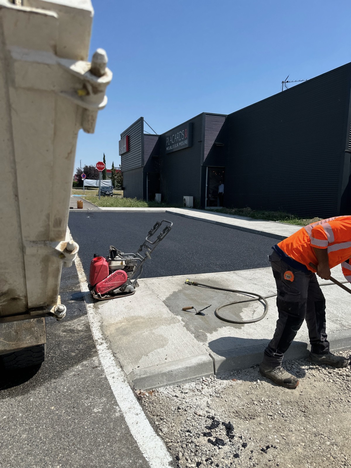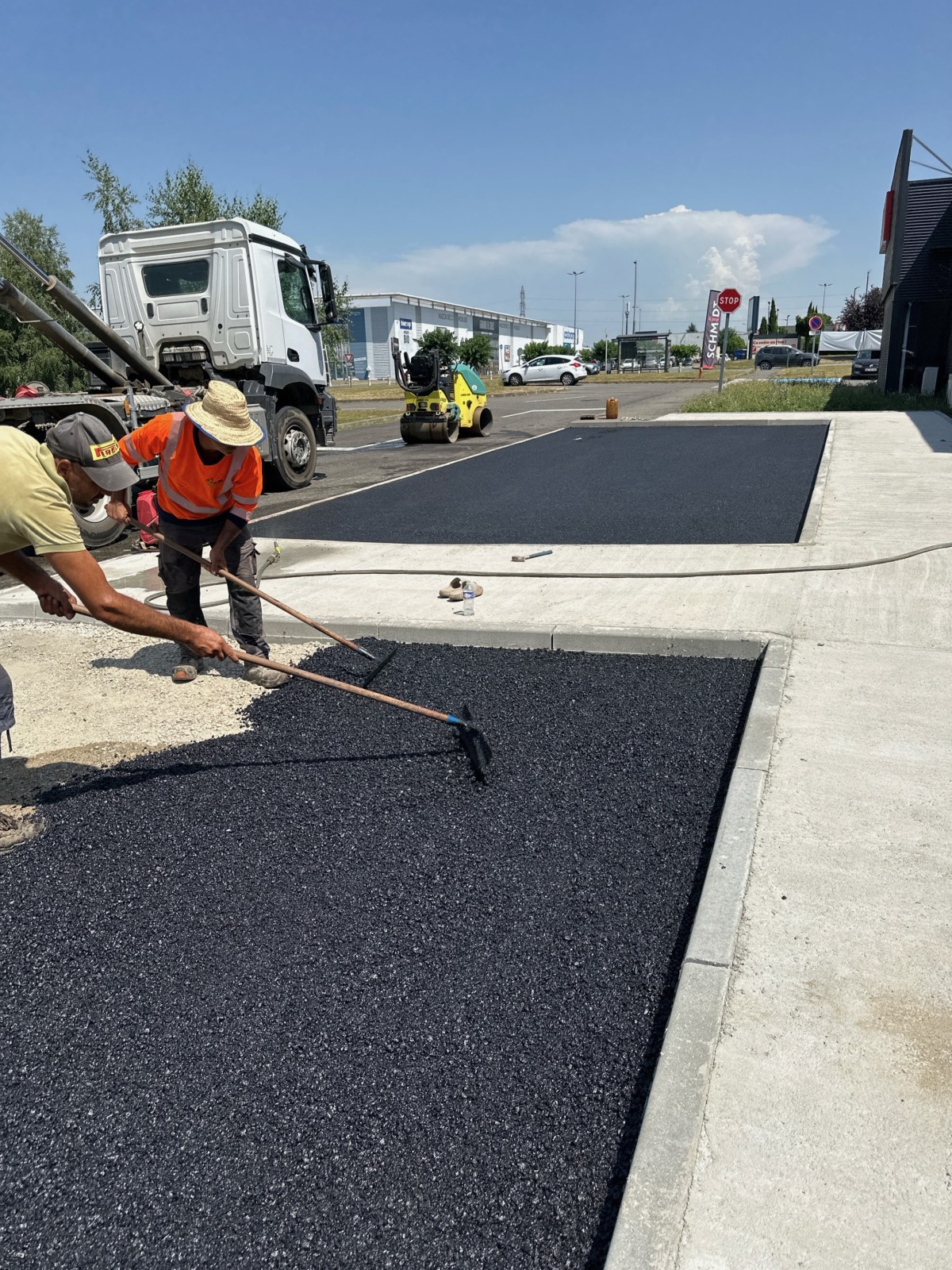 Pose enrobé à chaud sur le parking Leclerc de saint ORENS